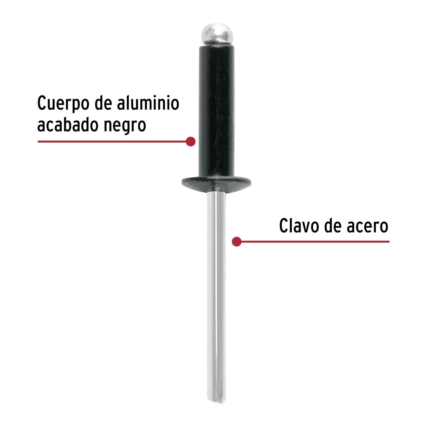 Bolsa c/50 remaches 3/16'x3/8' negros de aluminio, ala 3/8', Fiero 46569