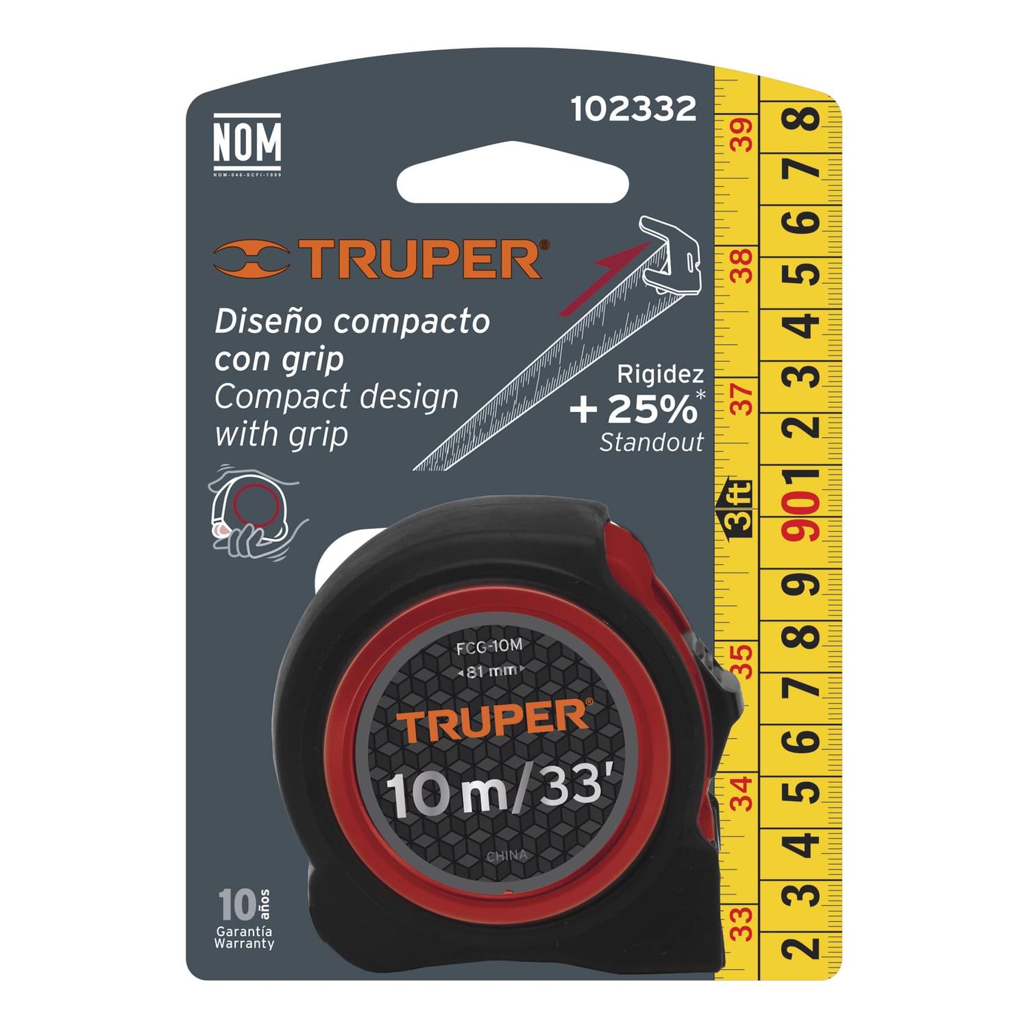 Flexómetro compacto 10 m con grip, cinta 25 mm, Truper 102332