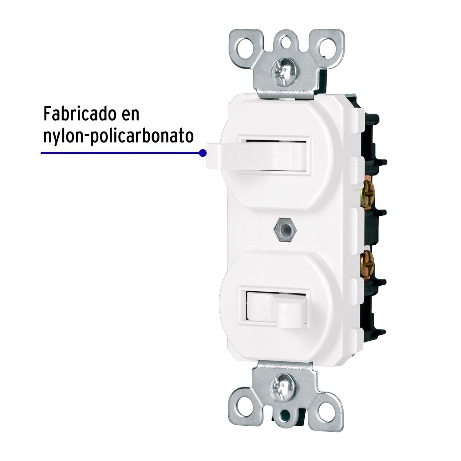 Interruptor dúplex de palanca, Standard, blanco, Volteck 47729